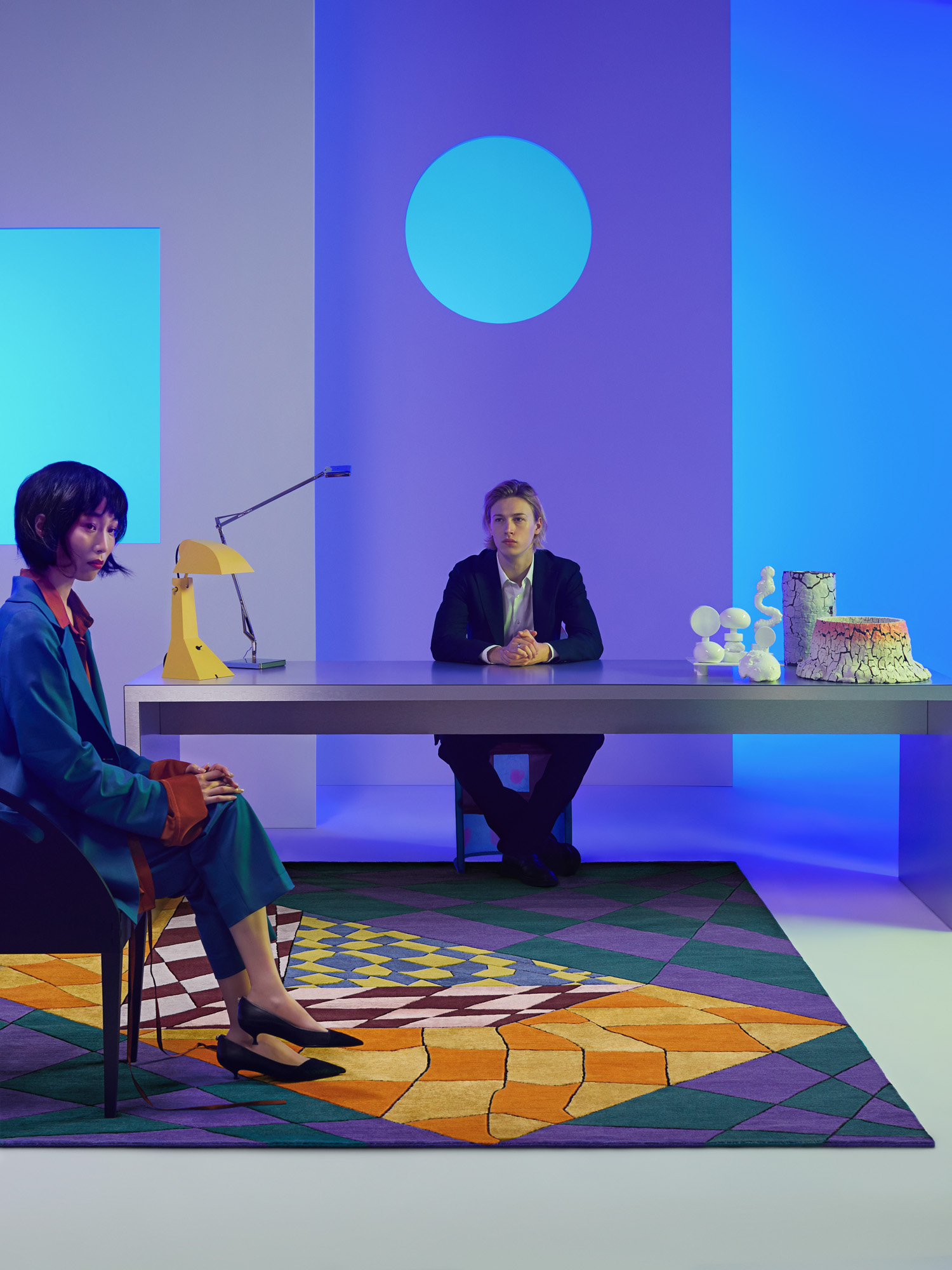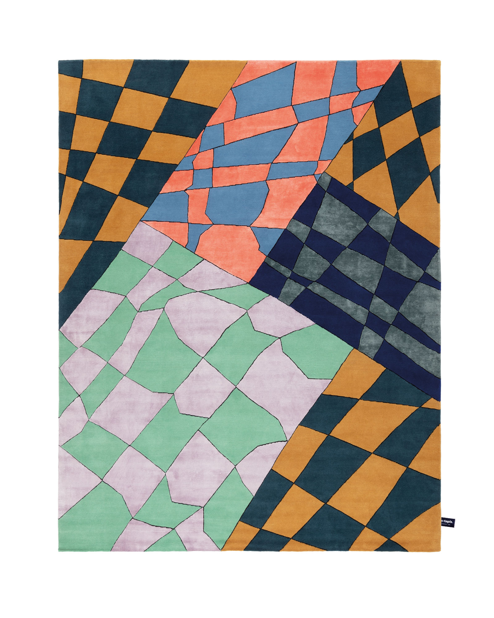 Multiple planes of brilliant chequerboards clash and crackle in Martino Gamper’s Xequer collection for cc-tapis. The bright, piercing colors intertwine and overlap in a psychedelic world born from Gamper’s imagination. Hand knotted with Himalayan wool, pure silk and linen, the materials interplay in the same way as the colour-blocked grids, resulting in a brilliant collision of textures and shades. Twisted lines, distorted perspectives and the graphics play typical of Gamper’s designs culminate in five spellbinding new rugs.