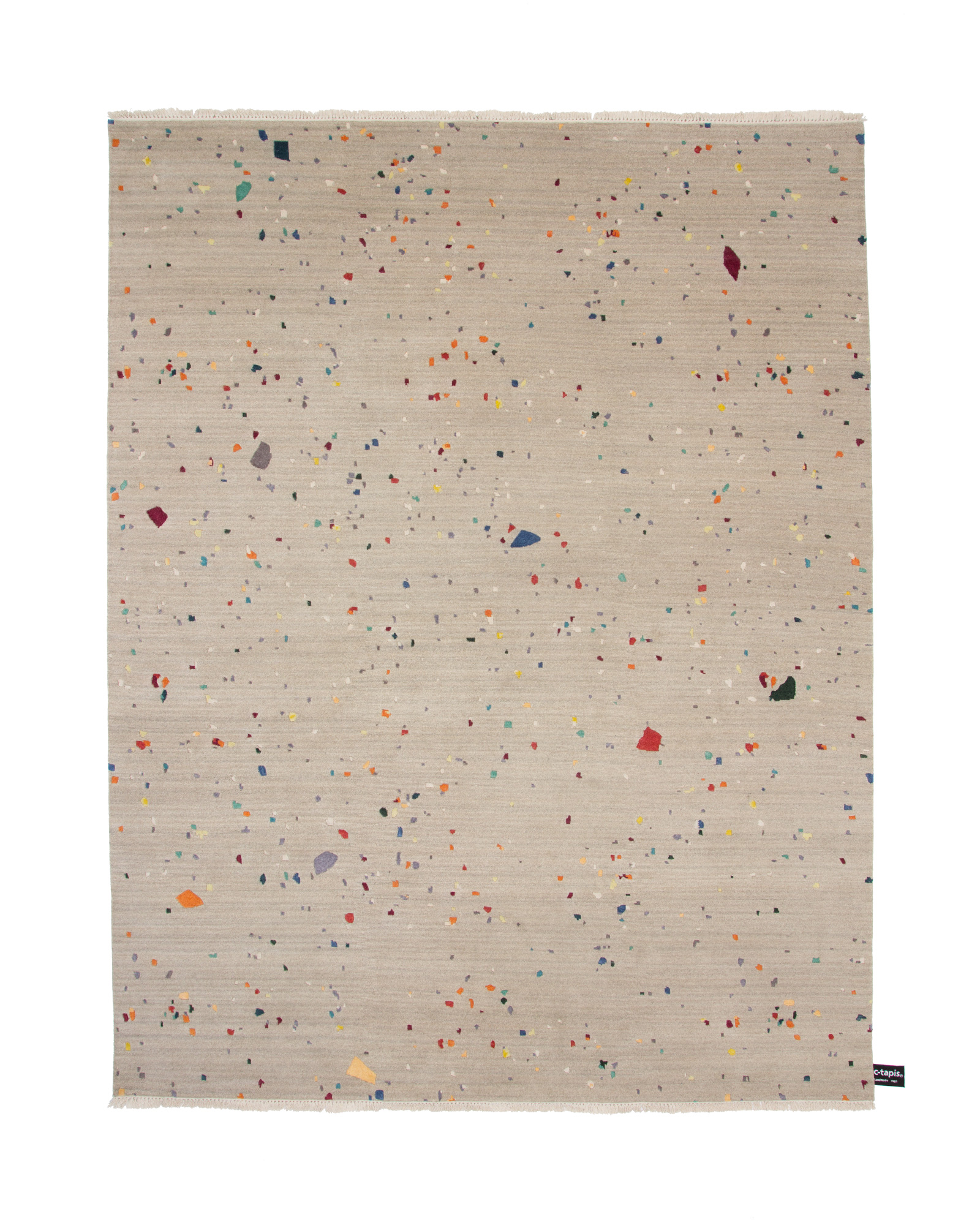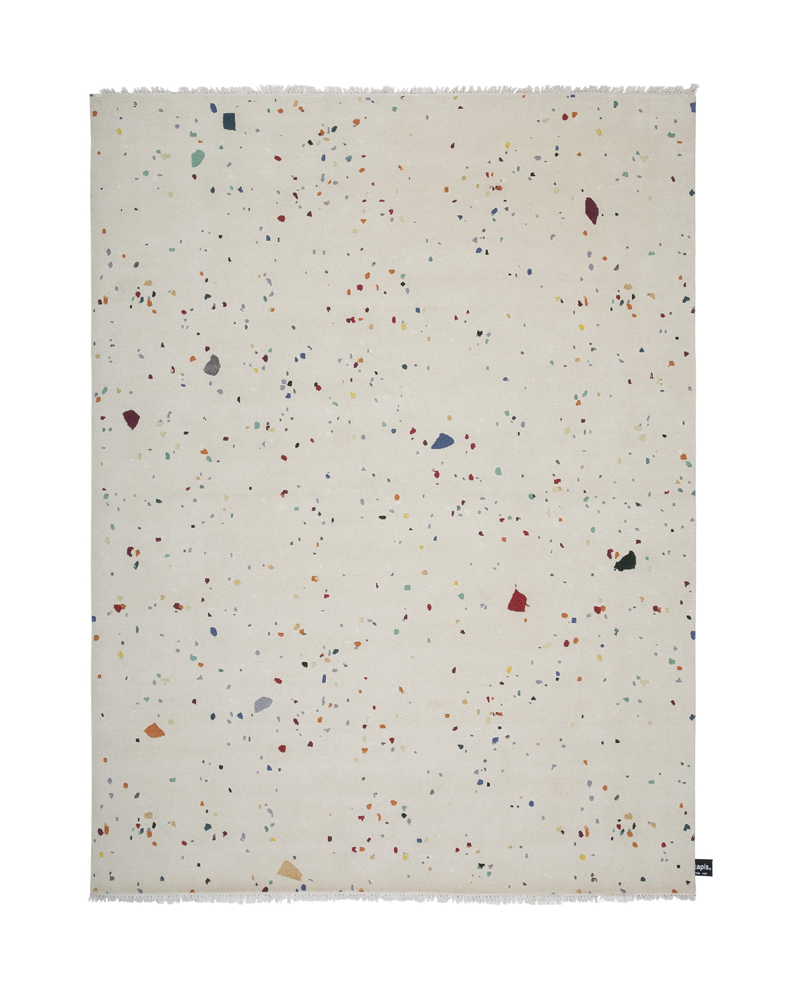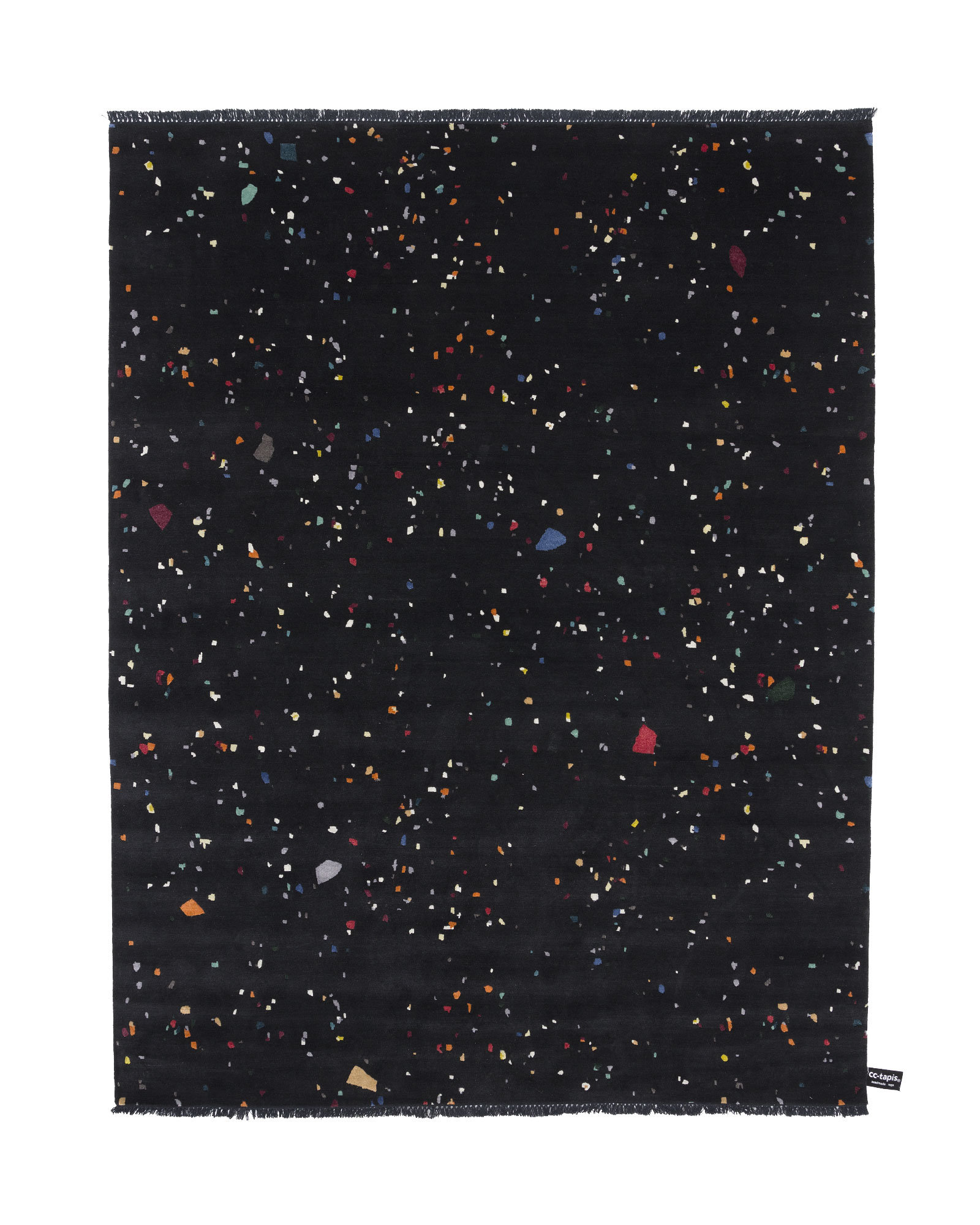 The subtle and abstract nature of the design is the result of Garth Roberts’ research and experimentation. Exploring contemporary and traditional graphics and texture, the haphazard nature of the design was inspired by the world of celebration, confetti and life’s fleeting moments. Creating a subtle and abstract graphic where the apparent randomness of the design has been translated by Tibetan artisans with over 152 000 individual knots per square meter. A randomness which has been custom made and born through experimentation. AFTER PARTY is available in three versions: Black, undyed and pink.