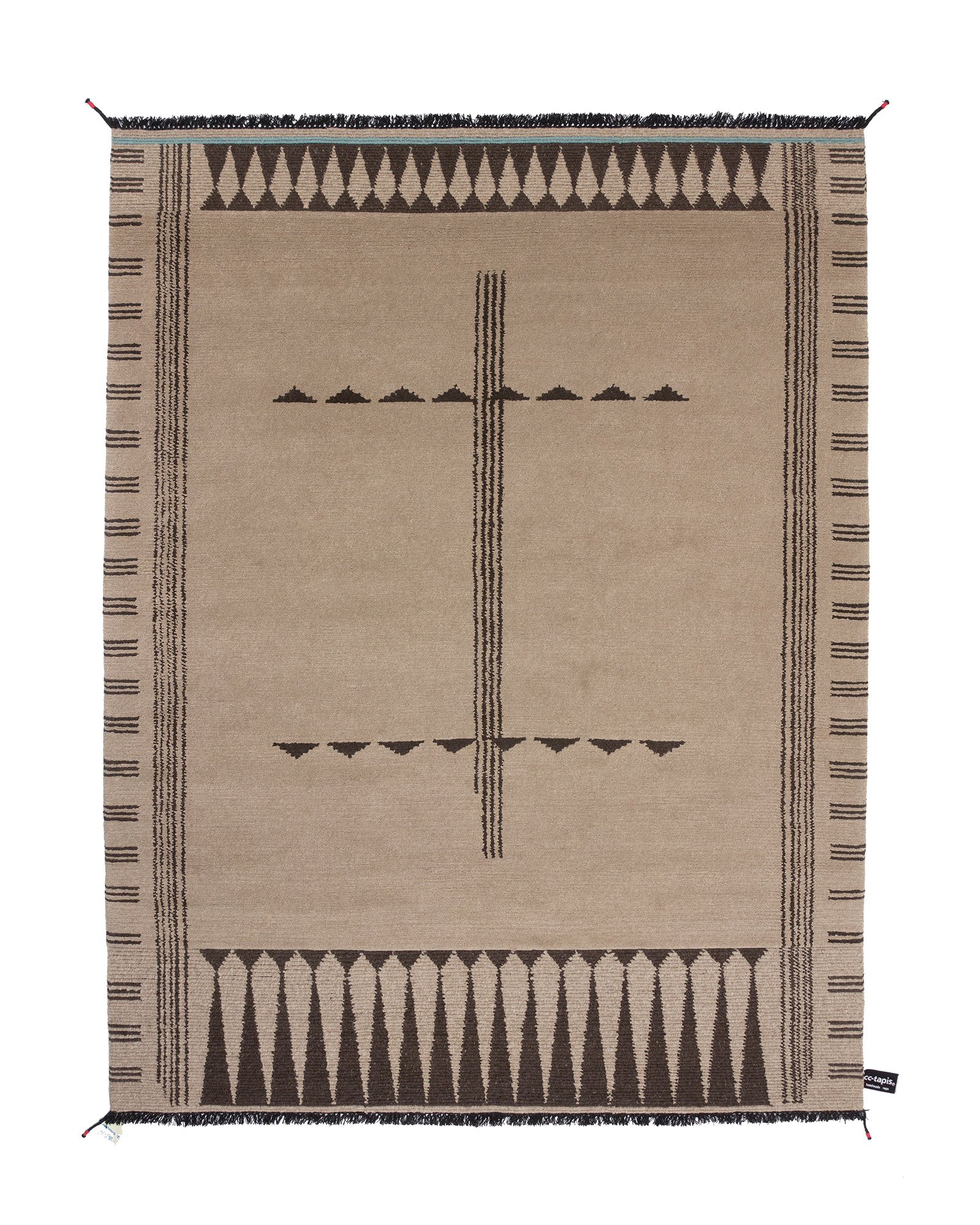 Primitive Weave by Chiara Andreatti. A collection inspired by Moroccan Berber rugs, infused with the rigorous Viennese geometric graphics from the 20th century. A mixture of Nepalese flatweave and different pile heights, the effortless combination of cultures and knotting techniques make these rugs rich in texture and aesthetics. Rugs that are as unique as they are beautiful.
