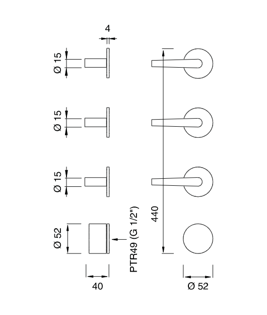 Thermostatic shower mixer set with 3 shut-off valves
