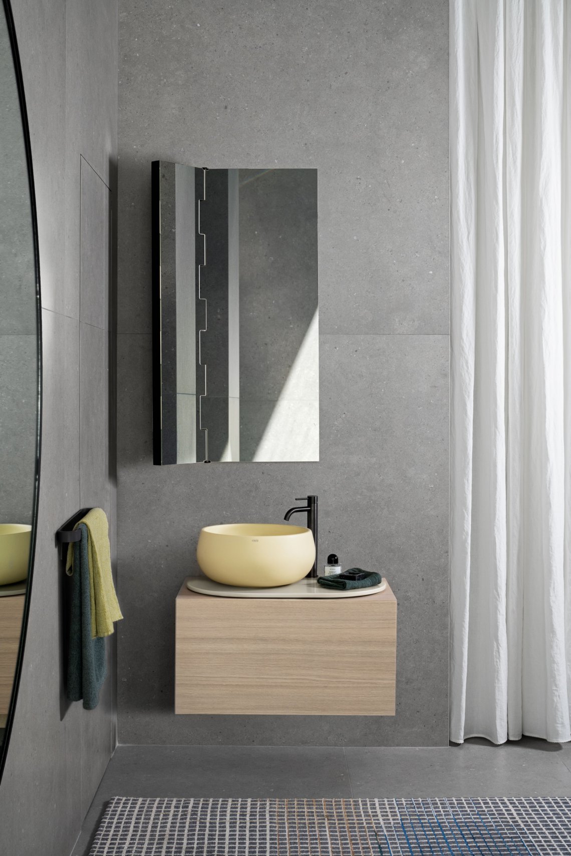 Delfo 76,更加通用。盡管體積小,Delfo 仍保持其優(yōu)雅和功能。全新 76 厘米版本干爽而必不可少,它甚至可以在不犧牲存儲容量的情況下增強(qiáng)最小的空間。木制抽屜柜可選擇多種漆面或木質(zhì)飾面,保留其自身的容量,為每間浴室?guī)硎孢m實(shí)用的氛圍。橢圓形陶瓷臺面上盆的形式純凈,傳達(dá)了這種高貴材料的魅力和實(shí)用性。憑借顏色組合的新可能性,將兩種元素調(diào)制為“Acque”和“Terre di Cielo”的光面或啞光色調(diào)。