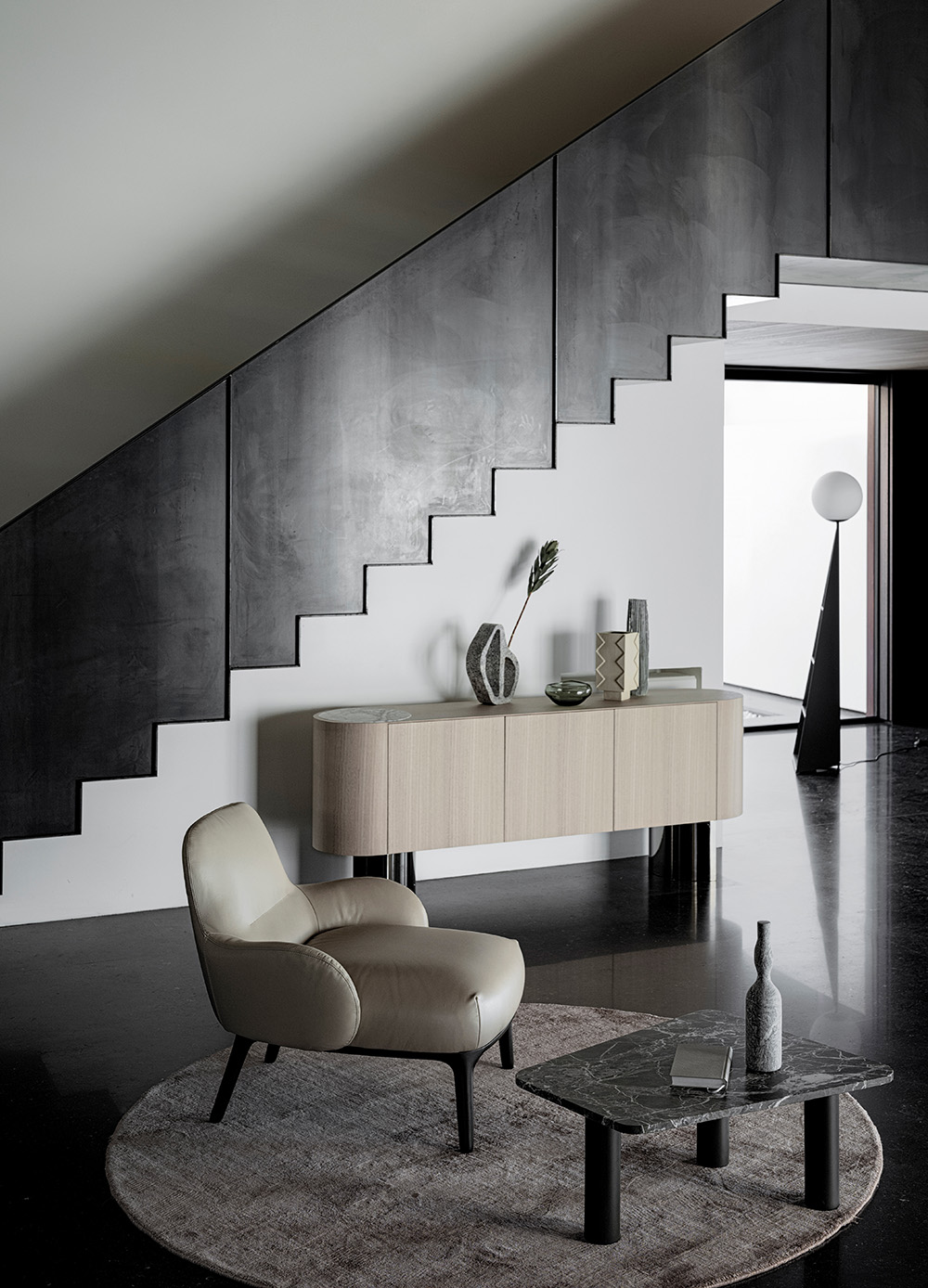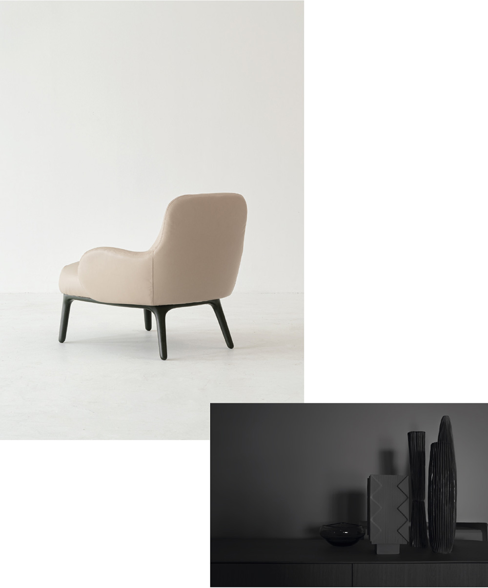 WOODY PLAYS WITH THE TYPICAL SHAPES OF AN ARMCHAIR BY BORROWING THE PURPOSE OF A CHAISE LONGUE, ENHANCING COMFORT IN EVERY DETAIL. ONE CAN PERCEIVE ALL THE VARIOUS MATERIALS, ALMOST LIKE IN A WELL EXECUTED RECIPE. WOODY GIOCA CON LE FORME DELLA POLTRONA REGALANDOLE L’INTENZIONE DI UNA CHAISE LONGUE, RIUSCENDO AD ESALTARE IL RELAX IN OGNI DETTAGLIO. I DIVERSI MATERIALI SI PERCEPISCONO TUTTI, COME IN UNA RICETTA BEN ESEGUITA.