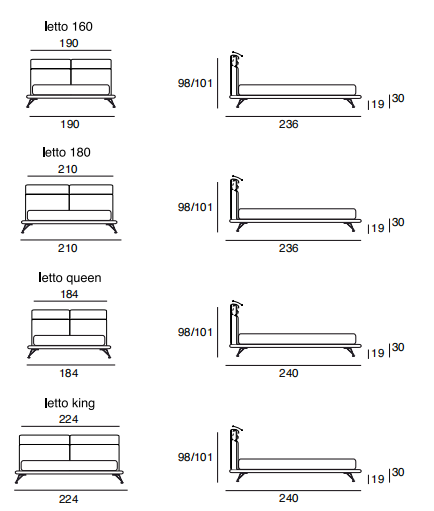 mount the feet of the Aida model, with relative height variation. The mattress