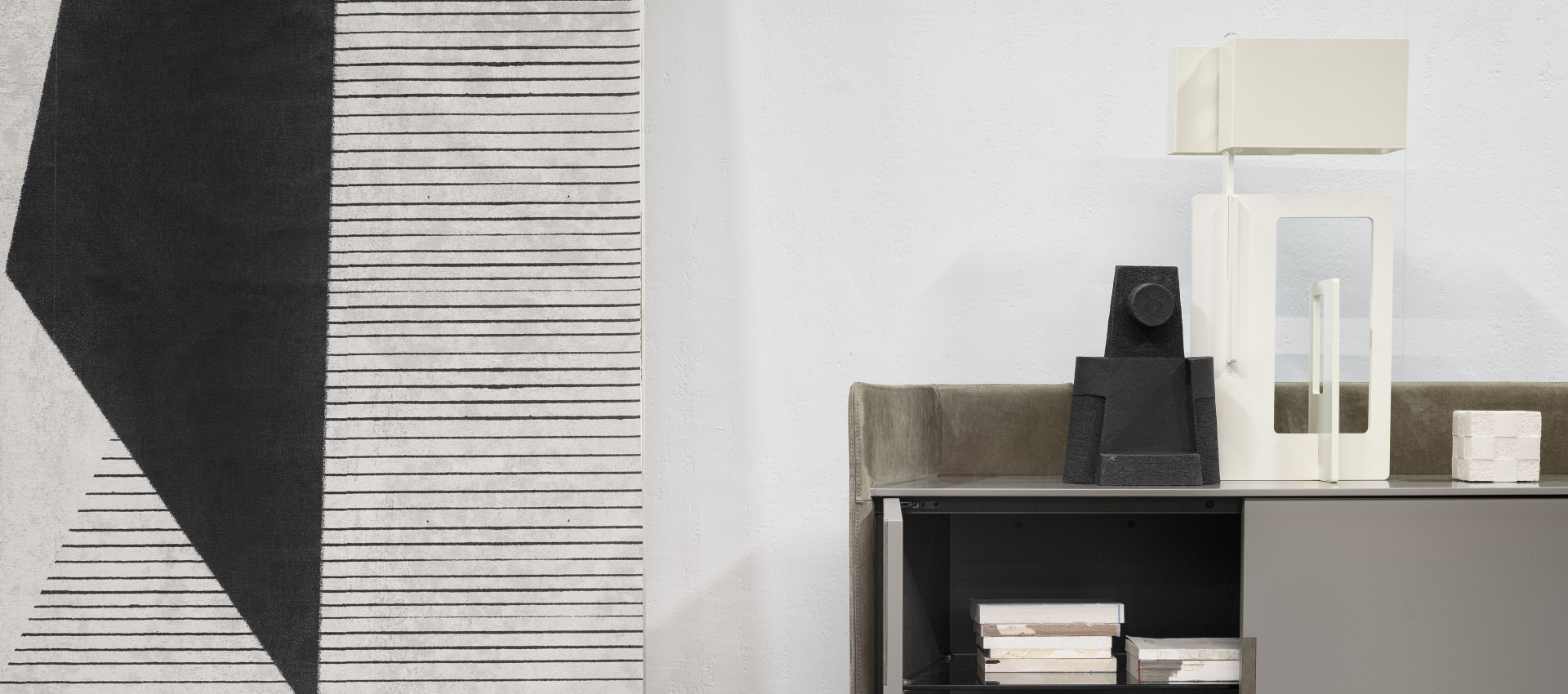 with visible stitching. Doors and top lacquered with glossy and matte finish. Handles