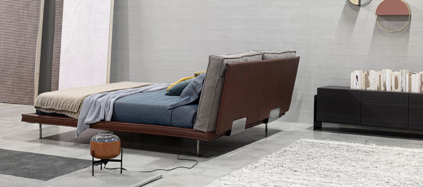 la cucitura che corre lungo tutti i cuscini sottolinea la purezza delle linee. la testata del letto divine ripropone la ricercata solidità della scocca rivestita in pelle che caratterizza tutta la collezione. un gioiello unico nella versione tutta in pelle, una composizione preziosa nella scelta di mixare pelle e tessuto. un riposo attento agli sguardi di chi è capace di ammirare e scovare lo stile anche nei più piccoli dettagli sartoriali.