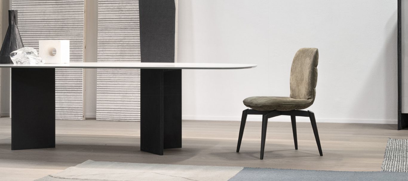 capace di armonizzarsi e dialogare con gli stili più differenti, alain si distingue per l’eleganza sartoriale nei dettagli. Una cuscinatura a consistenza soffice suddivisa in porzioni regolari, accentua la geometria ricercata e raffinata di una sedia confortevole come una poltrona.