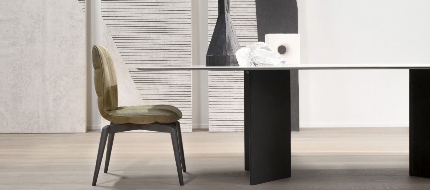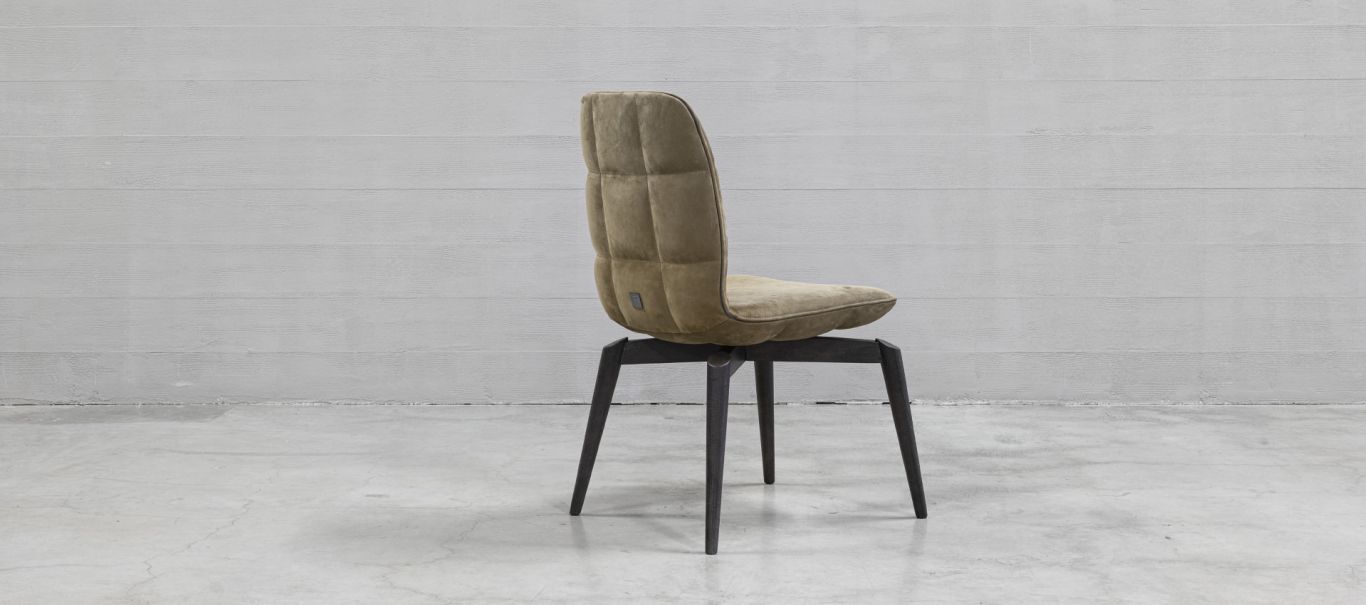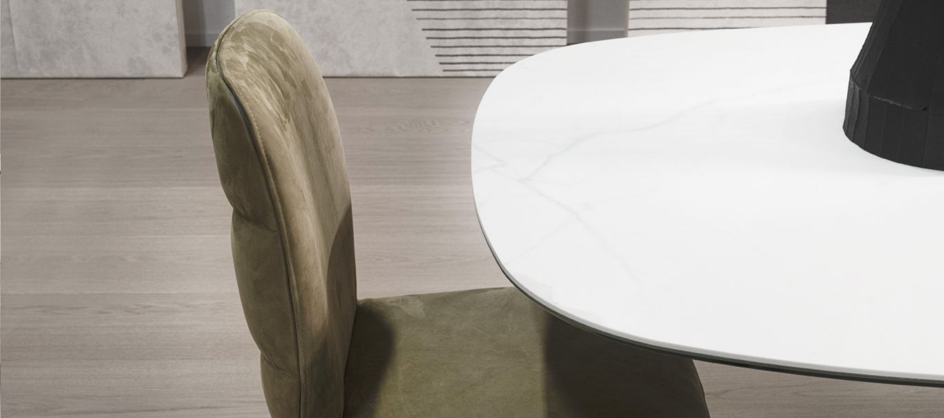 Il design della sedia Alain si distingue per l’eleganza sartoriale nei dettagli, le cuciture nello schienale donano carattere e armonia.