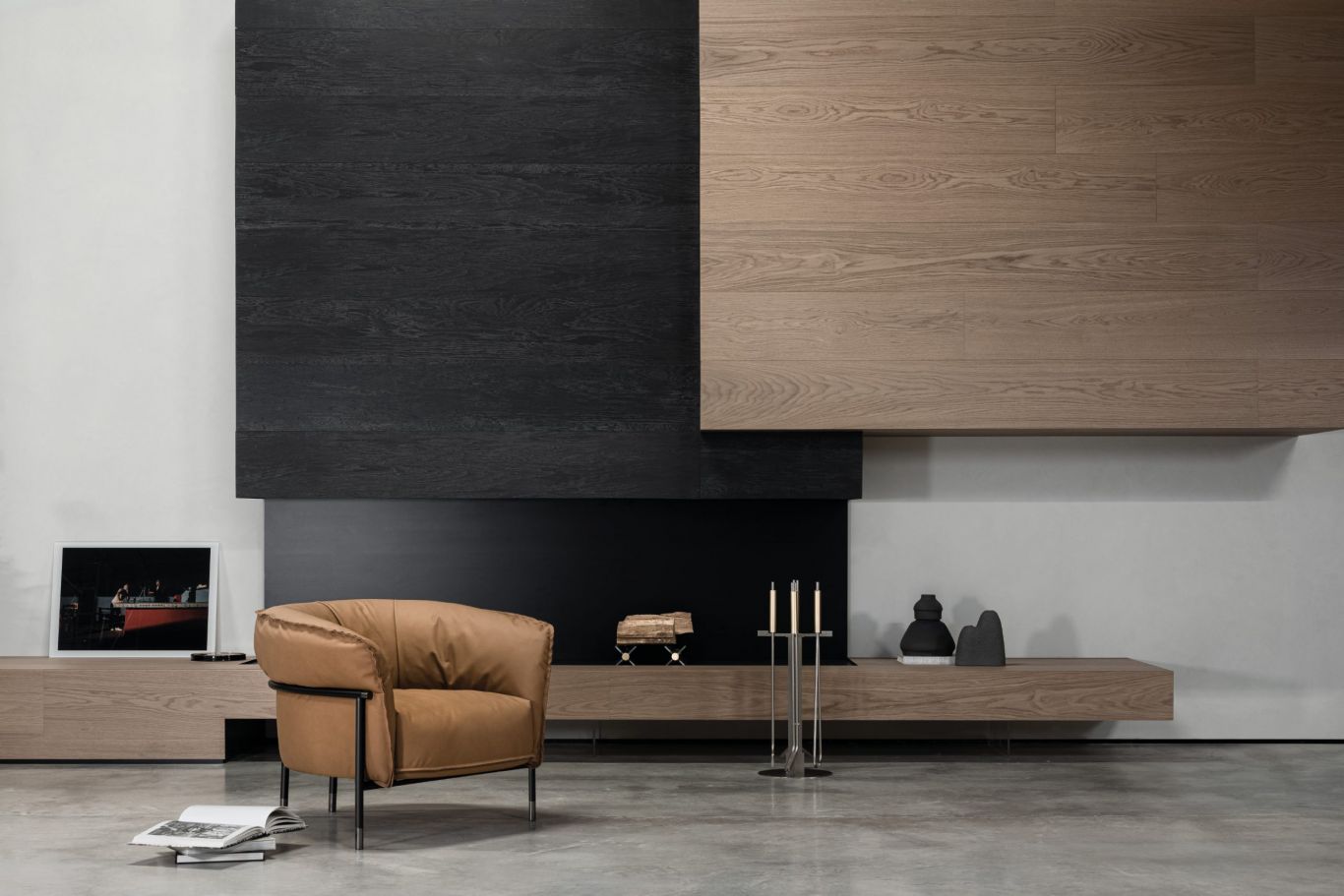 Un’esplosione di comode forme sostenuta da un rigido telaio geometrico. Immaginate poi l’opacità del metallo verniciato o la brillantezza dei particolari cromati mischiarsi ai tessuti e a un universo di pelli. La bellezza di questa poltrona, che è un inno alla Bauhaus, definisce immediatamente lo stile di ogni spazio che vorrà ospitarla.