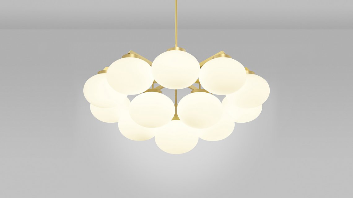 Sculptural and graceful, the CLOUDESLEY Chandelier is available in three sizes to suit a range of interiors. Opal glass shades are suspended in tiers by an expertly machined brass frame that is available in either a satin brass or bronze finish. The soft curves of these chandelier lights create a calming and heavenly atmosphere, ideal for adding a relaxed ambience to a bedroom or living area, and the circular form means it hangs perfectly above any round table.