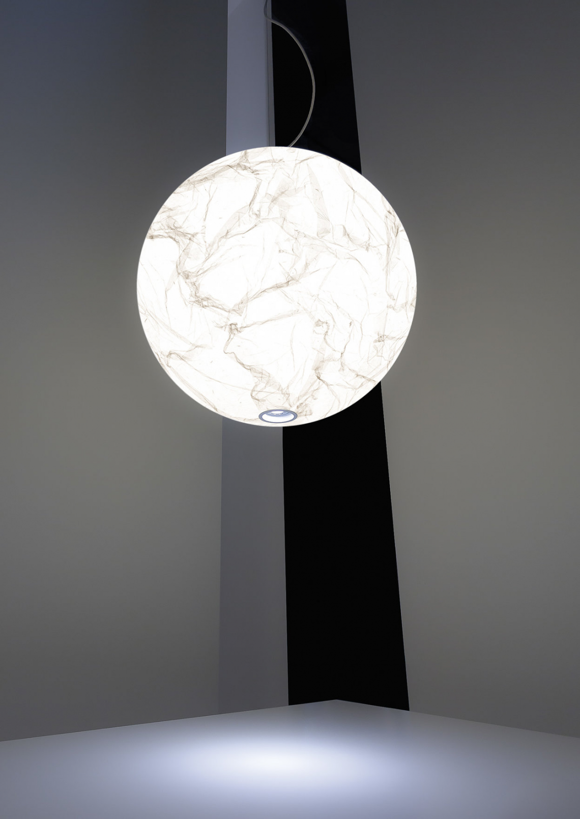 Seen from down here, the moon has a thousand nuances. When full, it brings joy to those who watch it turn. Moon was created from the dream of bringing the moon inside your own home. The hand-made Japanese paper surface makes every lamp unique.