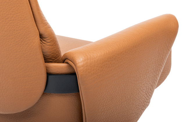 座椅的外觀設計也并不遜色于這一智能化的座椅方案:巧妙的皮革折疊塑造出高背椅的側影。座椅使用不易變形的5mm NECK皮革,邊緣處處理巧妙,自然流暢渾然一體–給人一種無與倫比的皮革體驗。
