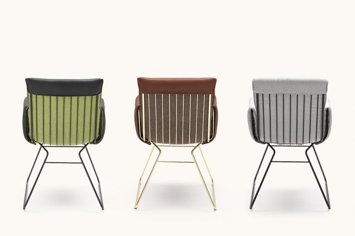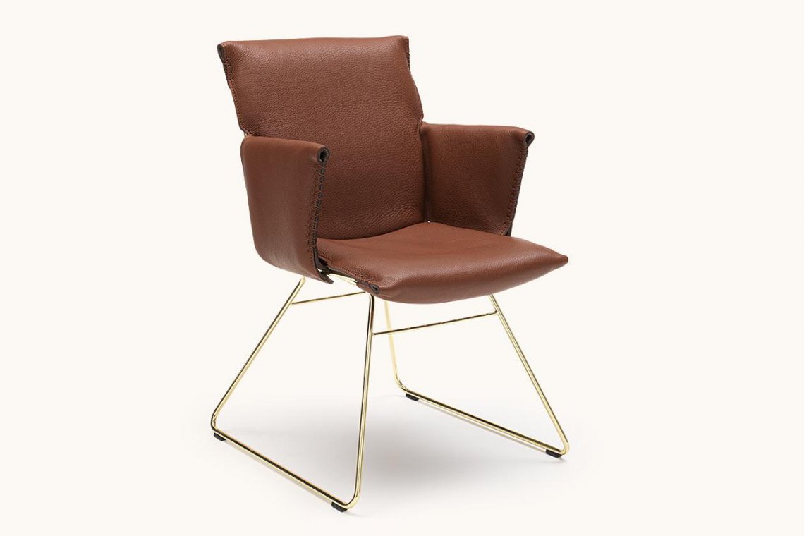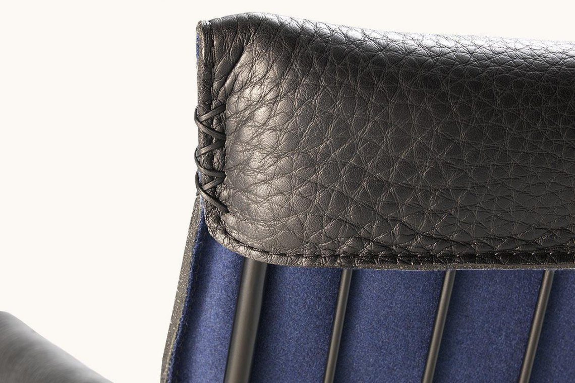 精致的鋼制底座設(shè)計(jì)成了滑板形狀,讓人情不自禁的想坐上去。細(xì)絲結(jié)構(gòu)作為成型框架,其上套有皮革襯墊。椅背襯墊上向后翻折的皮革詮釋了形狀、高超的皮革拼接工藝和精美細(xì)節(jié)的完美結(jié)合,賦予座椅獨(dú)特的個(gè)性。
