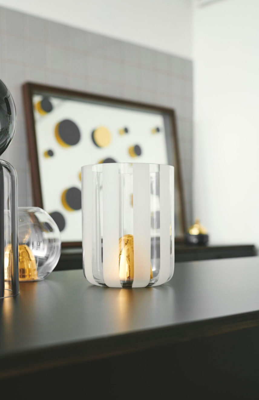 The Festival Vase is a large vase in glass with a very classic pattern. The gold colored bullet makes the vase decorative and is especially useful for beautiful flower arrangements.