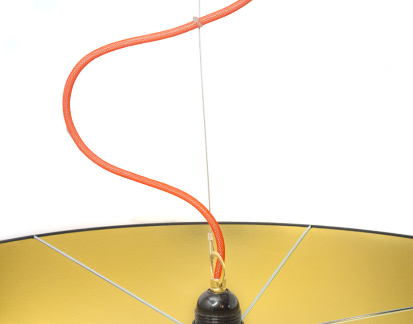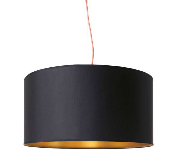 The Alexis is a classic lampshade with gold inner lining. The lamp shade can be used anywhere – over the dining table or as a ceiling light. The shade is handmade and comes with an neon orange cord – just to give it some egde. Also available with a black cord. Leave a comment when you check out.