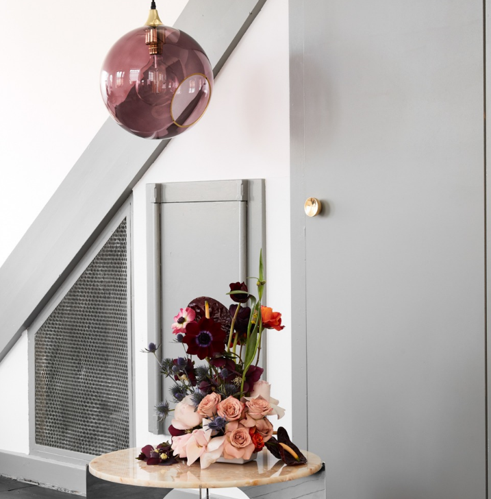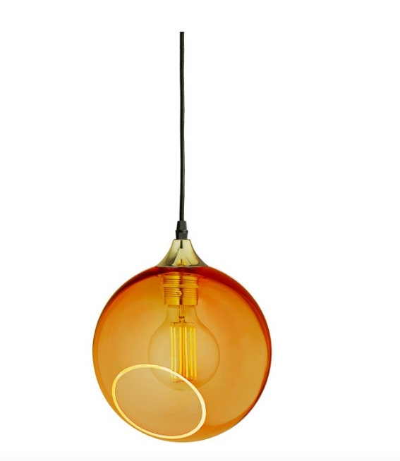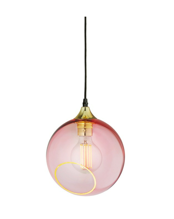 The Ballroom pendant is simple and excellent. The classic shape combined with the gold plated or black suspension makes this lamp timeless. The glass dome is mouth blown and hand painted. The edge of the faceted hole is either gold or silver.