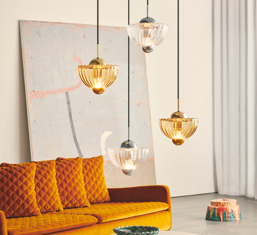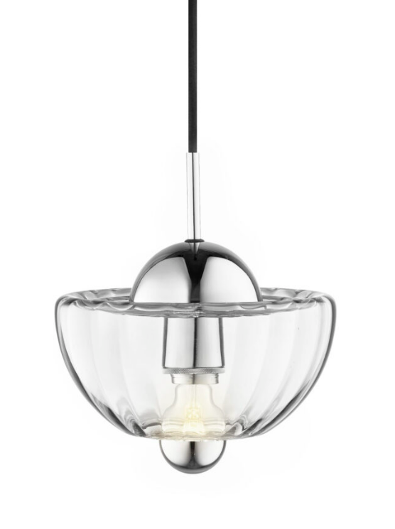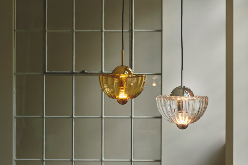 This lamp is inspired by the beautiful and symbolic lotus flower. The shape of the lamp looks like the lotus flower just before it blooms. When the lamp is switched on the wavy glass creates light rays shaped like the blooming leaves of the flower. The glass is handmade and the waves in the glass are therefore unique. Just like the lotus flower.