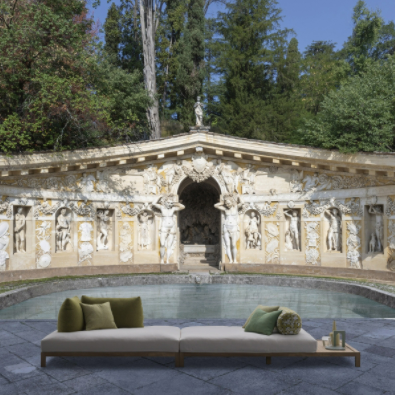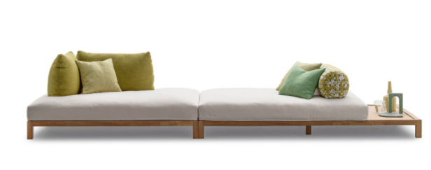 Haneda is a seating system inspired by the tatami. Its peculiarity is total flexibility thanks to the infinite compositional combinations that can be obtained by arranging the seats supported by wooden bases or mattresses resting on soft carpets.The outdoor version enhances this feature, making the collection ideal to furnish verandas and covered terraces.