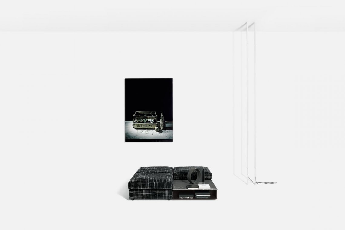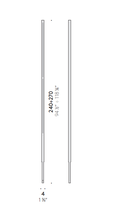 A luminous double line from floor to ceiling distributes light along the entire length of the metal tubes available in matte black or white. These two light sources can be switched on separately or together. There’s no bulk, but extreme versatility: turn it on its axis and the lighting completely changes in the space.