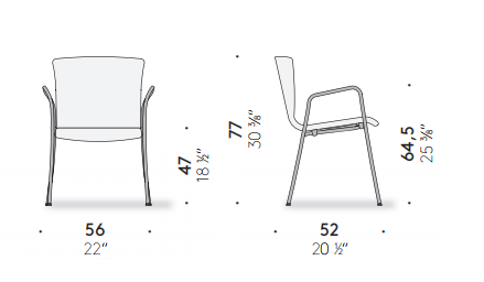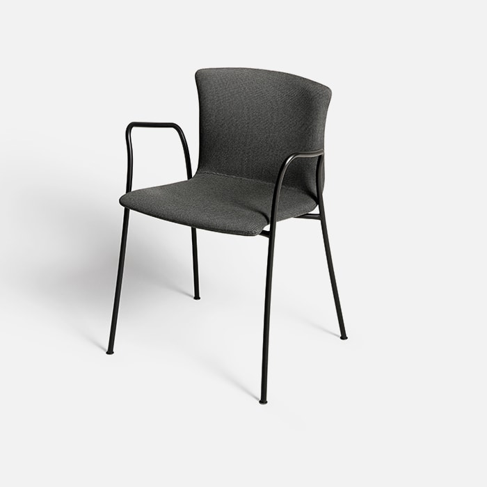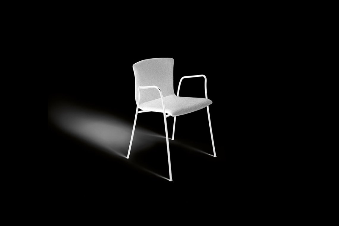 It’s static and stackable, with or without armrests, and covered in fabric or leather. Cirene is a project by Vico Magistretti, that comes in many versions. All of the solutions are unmistakably elegant but also extremely versatile and comfortable: the anatomical curved beech shell sits on a slender polished chromed or matte black painted steel frame.