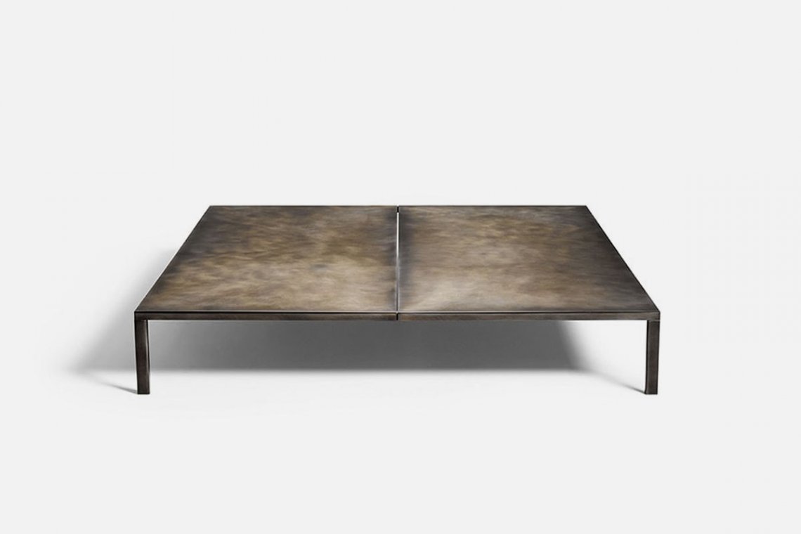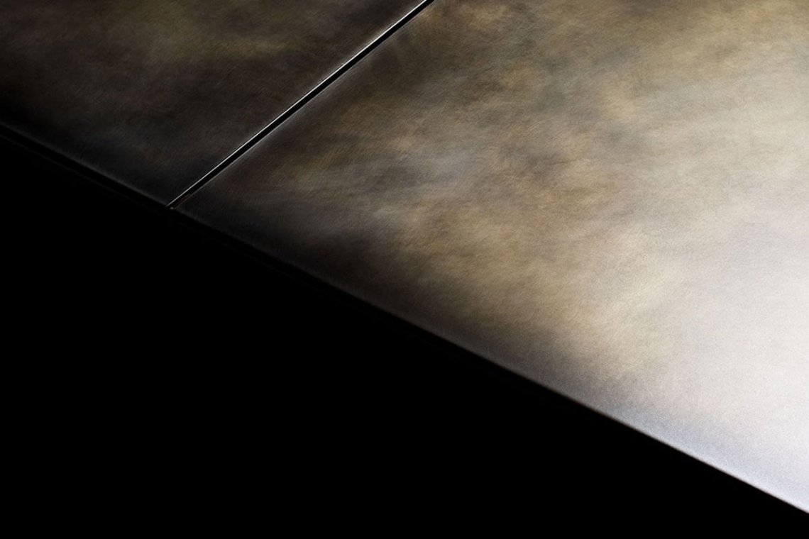 Slim yet strong lines are splendidly interpreted by the finishes of De Castelli that combine experimental design and industrial production techniques. Each Metallaro side table — a stainless steel sheet powder-coated with a semi-matte white, matte black and DeLabré distressed finish — is a one-of-a-kind piece: the surface changes over time, adding beautiful accents with each passing day