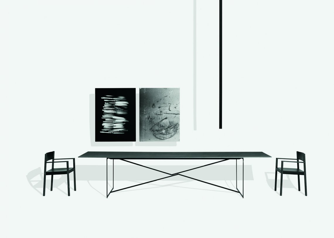 The main motivation behind the sketches of the T.?T.?A.? Table was to create a solution for a new table frame, based on an entirely generic structure.? Studies on Josef Albers – especially the optical experiments inspired the graphic expression.?