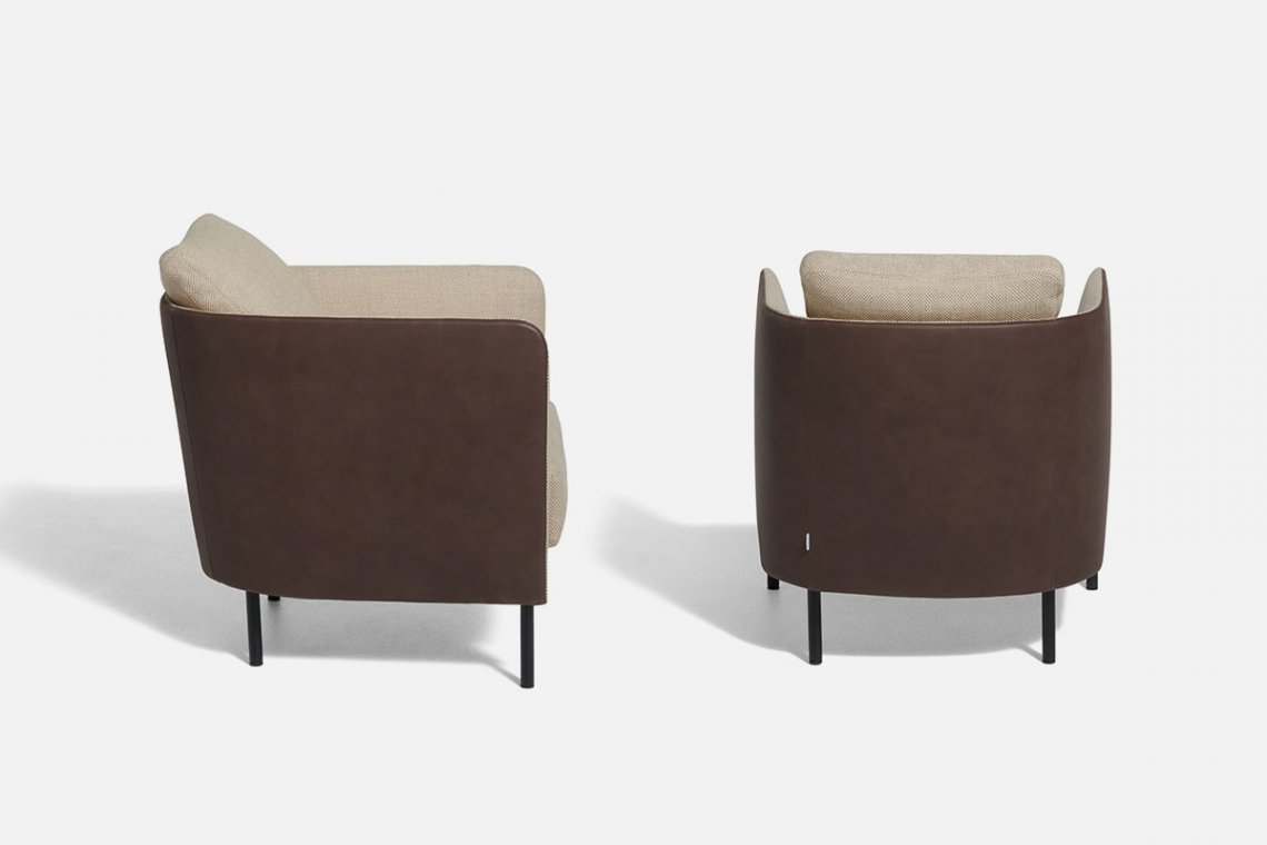 Blendy’s world is ready to take on different colours and fabrics in every possible variation of the project: Blendy, Blendy Lounge, Blendy Movie and, from this year, Tiny Blendy. The recognisable lines of the armchair’s 2022 version feature a new stylistic design running through it, the deep and comfortable structure has been resized and reproportioned relative to the more cumbersome, previous dimensions, packing Tiny Blendy with improved versatility for living spaces, even as a pair. The common thread remains the same: a design capable of significantly altering a living room’s atmosphere through the considered choice of the leather/fabric combination for the external and internal upholstery.