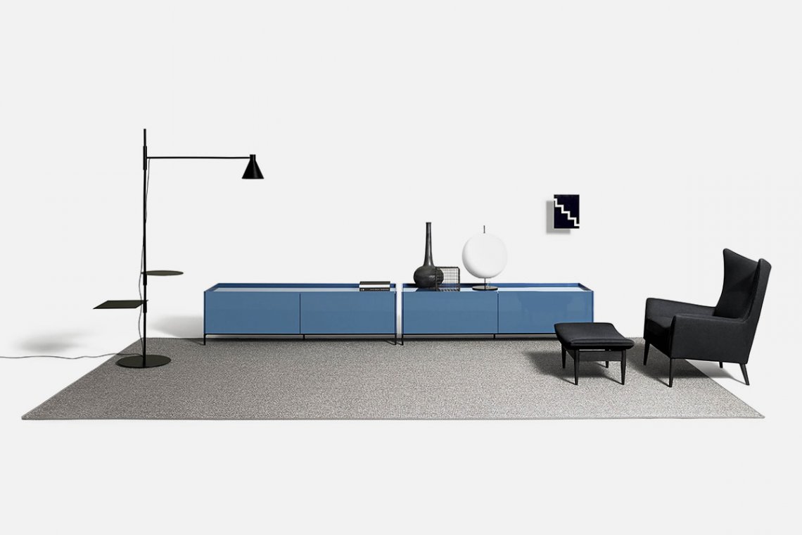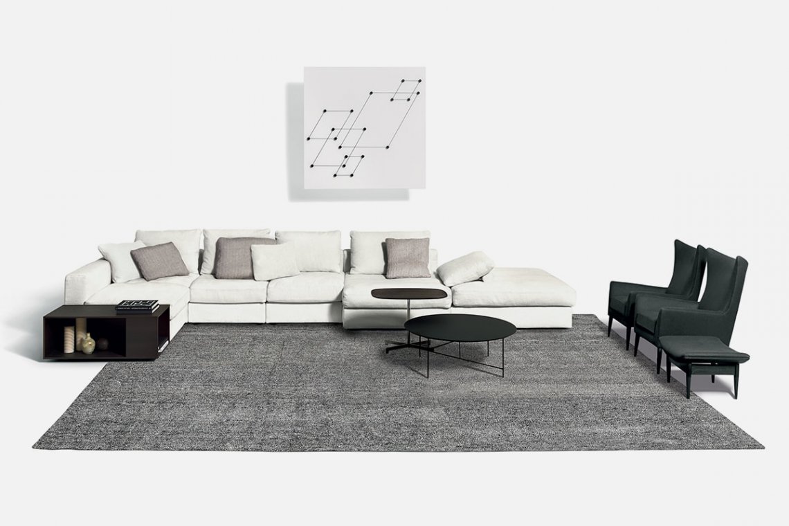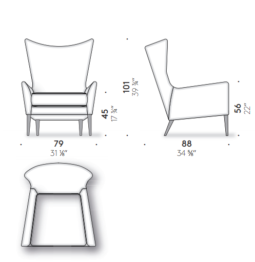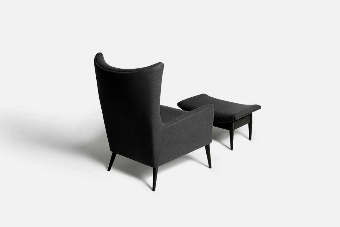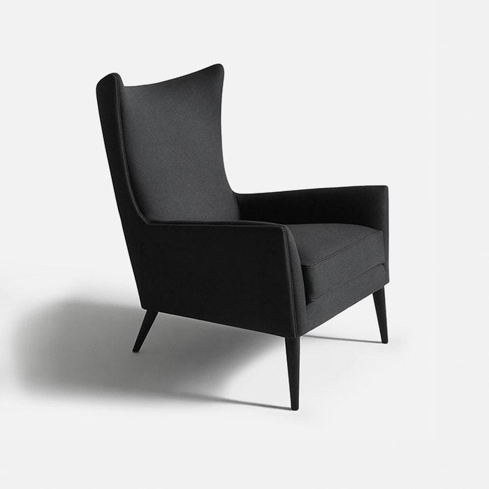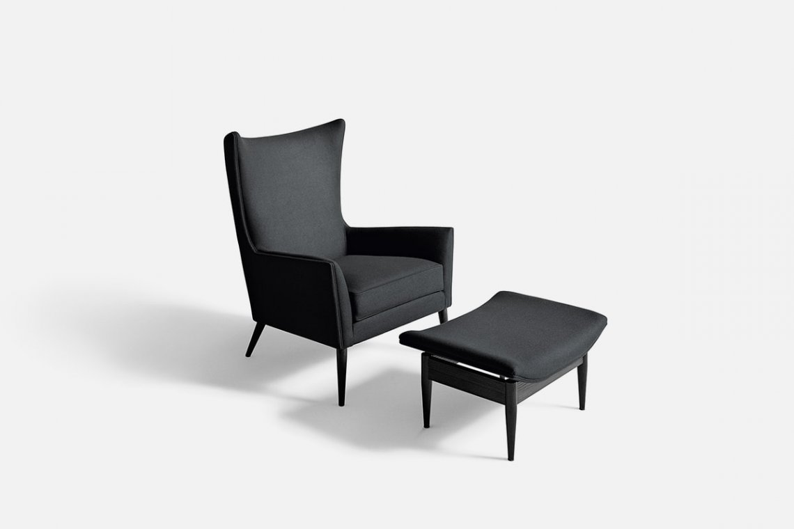 The project, a contemporary classic from 1956, is by the American designer Paul McCobb. The Wingback armchair has a high back characterized by streamlined angles that combine Shaker influences and traces of Scandinavian design. Clean lines and functionality take the spotlight. A coordinated pouf completes the armchair for absolute comfort.