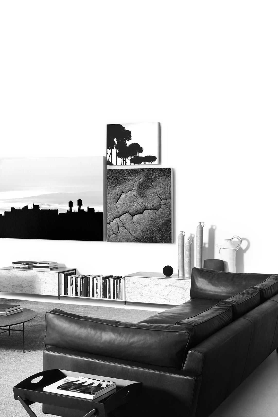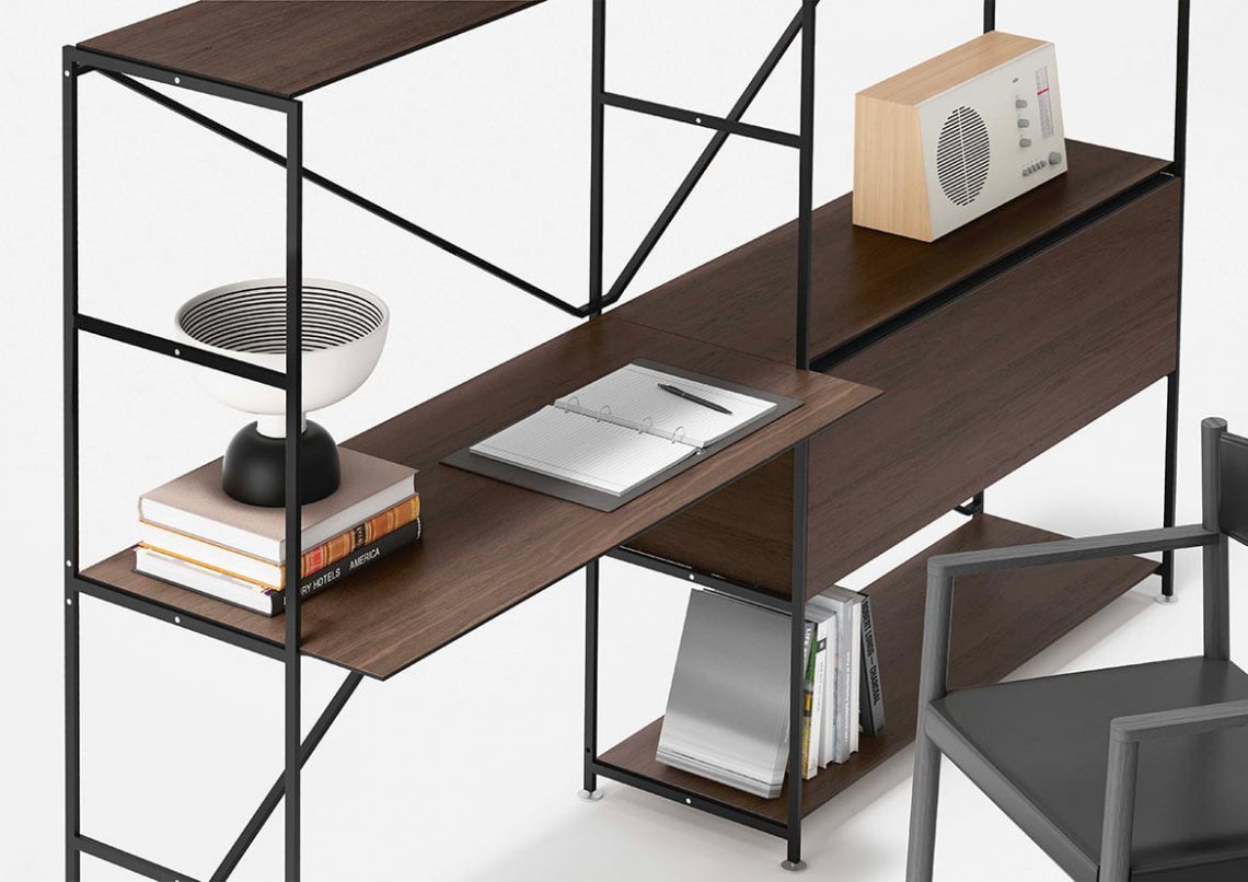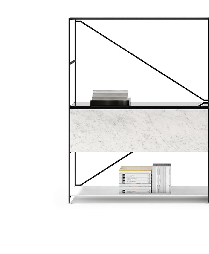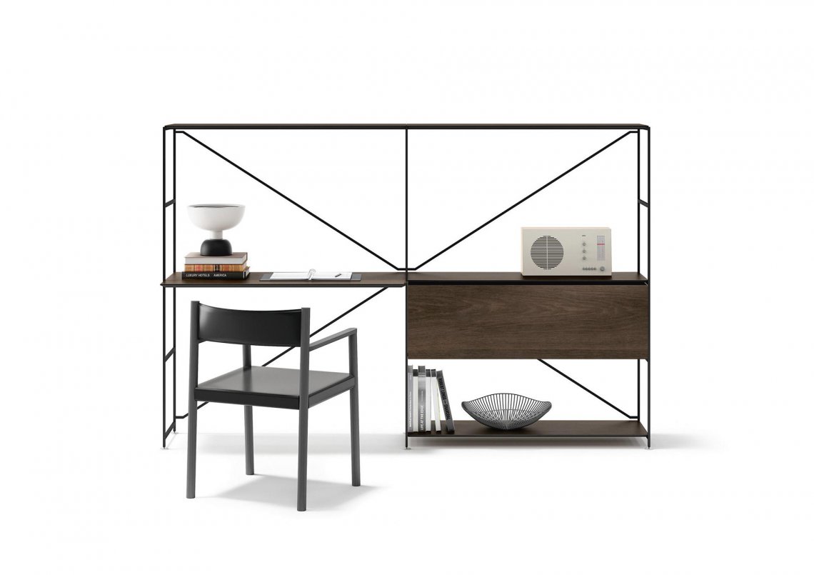 The modular R.I.G. shelving system is able to transform into any number of low profile furniture solutions suitable for the living room, study, entrance hall and dining room, including television stands, small tables for lighting, credenzas and low height bookcases.