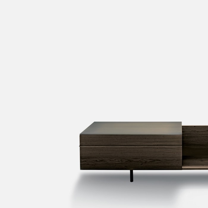 Each is a one-of-a-kind piece. The SC16 cabinet system is not just roomy and versatile. It is enhanced by the absolute quality of the raw materials chosen with care: Fossil oak and smoked oak. In a successful balance of craftsmanship and beautiful veining, the wood essence is the star, supported by a light base in matte black steel.
