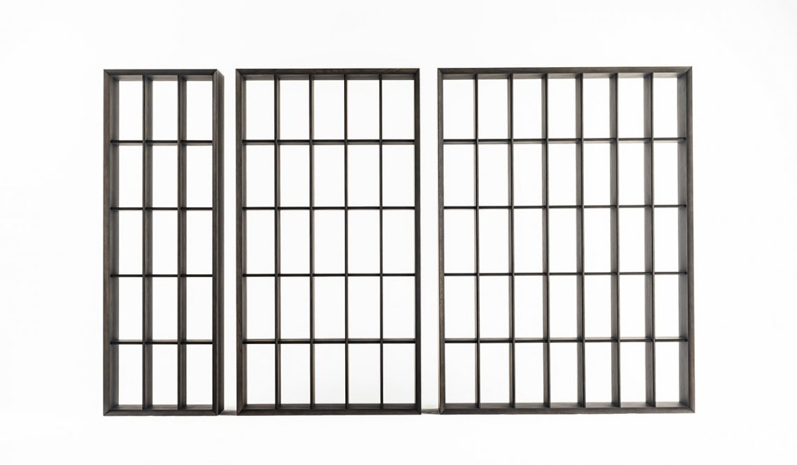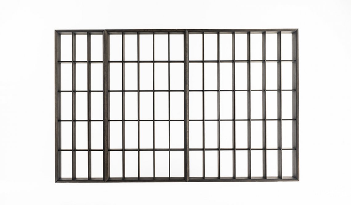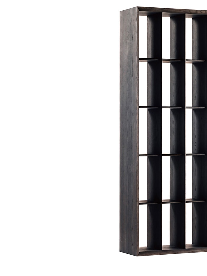 Simple, geometric, balanced. Komorebi is the oak wood shelf unit inspired by the sliding doors of traditional Japanese homes. Very light, it lets sunlight filter through the shelves, creating plays of light and shadow in the room. The precise, rigorous, almost formal design brings the simplicity of Japanese beauty to any living space.