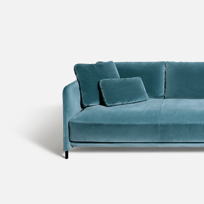 A variation on the theme: the compact and rounded sections of the Blendy collection are completed with a sofa and armchair that have been slightly restyled in the proportions. They have the same line as designed by Omi Tahara, but are distinguished by the height of the seat, the smaller feet and the single cushion, which in the Lounge version comes in two lengths. The result is balanced and cohesive.