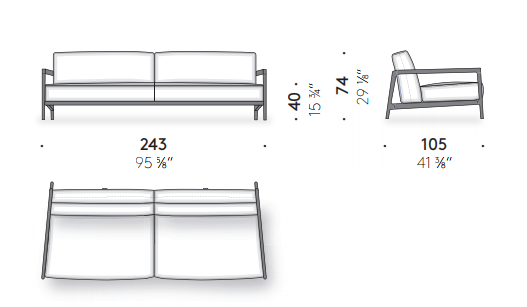 Sofas, armchairs and pouf are marked by contrasting stitching that evoke sartorial know-how.