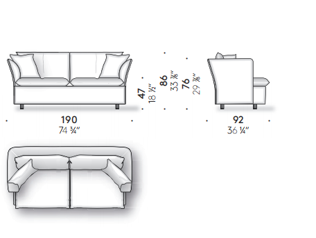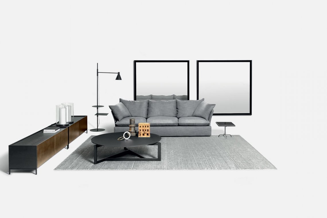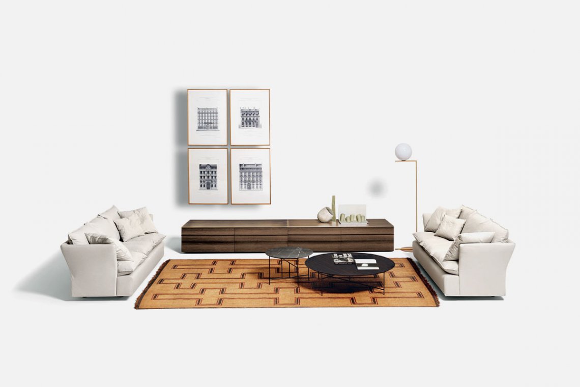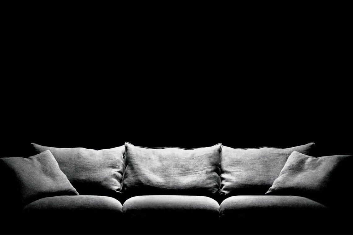 Informal, open, almost spontaneous. The Pillow project by Vico Magistretti features an open structure with slightly inclined armrests and a series of cushions forming the seat and back. Goose down throw pillows, placed here and there, create a cozy, reassuring space. Its expressive aesthetic lends itself to various modular compositions. Pillow is the perfect place for conversing, reading and, above all, relaxing.
