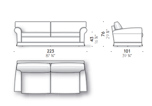 A great classic with completely restyled proportions. The low back and wood frame with elasticized webbing and padding with different densities guarantee absolute comfort, which is also defined by the generous goose down cushions. With its perfect balance of convention and spontaneity, the Regent’s 16 sofa finds its rightful place in a contemporary living space.