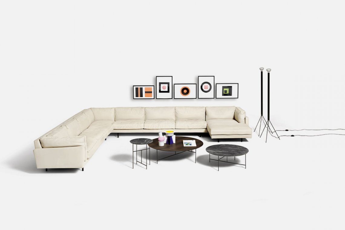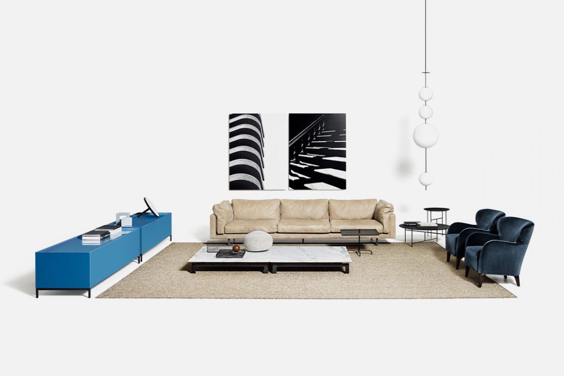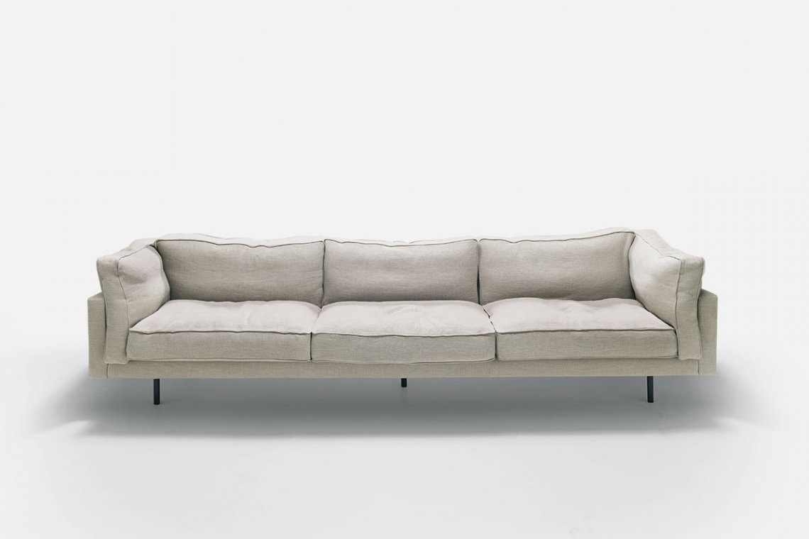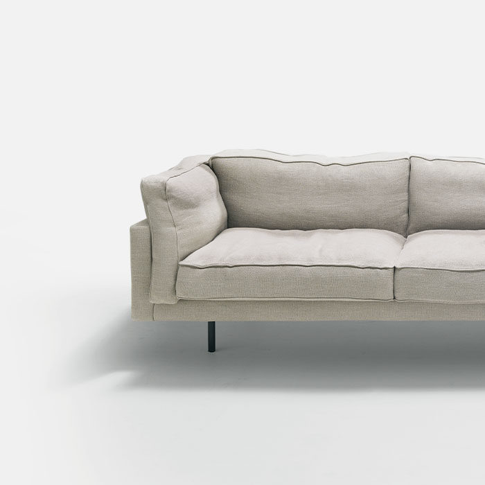Geometric elements, squared lines: the design of the Square 16 sofa is a sleek and well-balanced re-edition of the De Padova historical archive. It has a particularly comfortable, soft, regular seat, slender steel feet with a sixties vibe and edges defined by distinctive seams. Both the fabric and leather versions, especially in the modular combinations, are the perfect solution for various living room layouts.