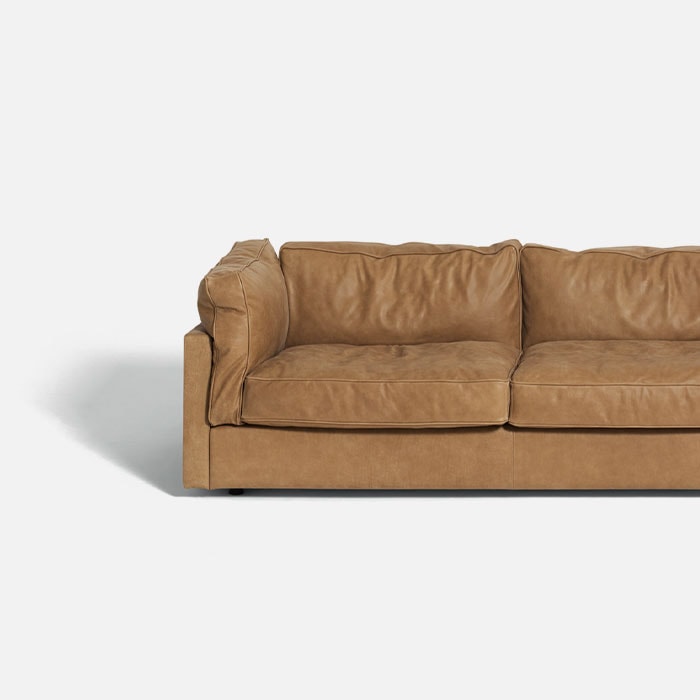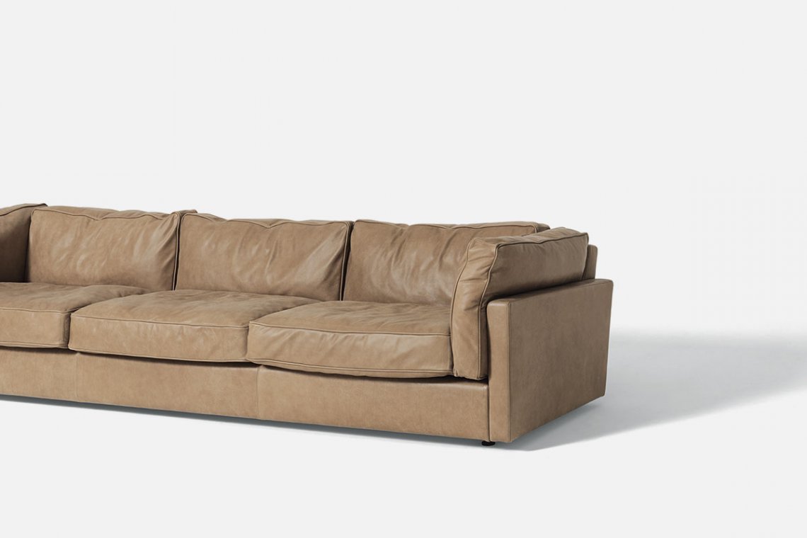 A contemporary classic. The squared lines of the Square collection are completed with the Ground sofa, which is a floor version with a higher base. The ample, cozy seating features goose down cushions that create a sleek yet relaxed look.