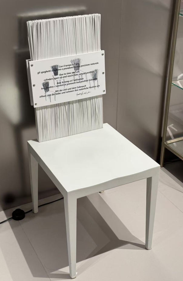 Grazie allo schienale flessibile, questa sedia stampata in poliuretano e con armatura di metallo è un punto d’unione tra rigido e flessibile. Lo schienale è formato da un ventaglio di steli di PVC che si modellano in posizione libera con l’uso.