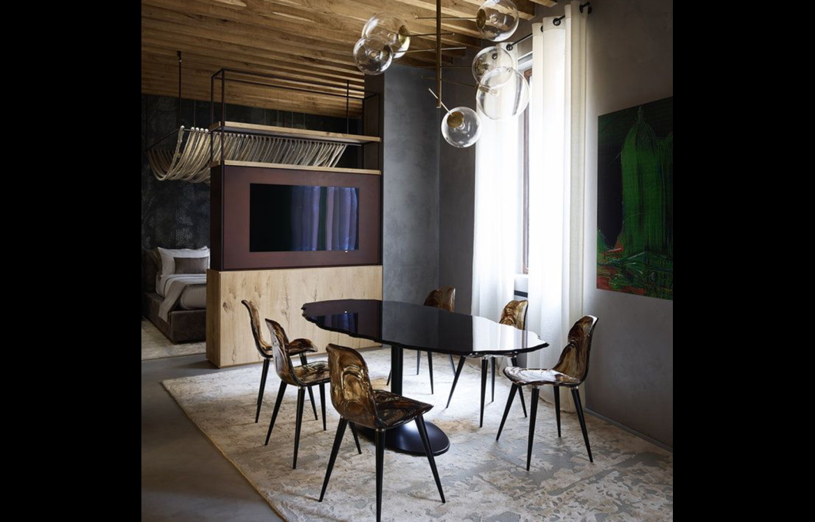 A splinter. A big fragment of faceted glass with a thick irregular edge that recalls the rugged coastline of the islands of the Egeo sea, from which it takes the name.