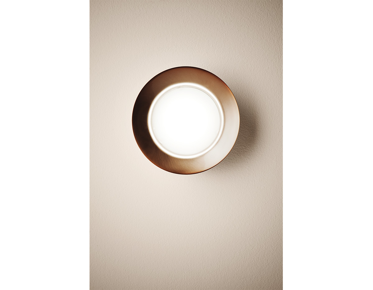 Metallic ceiling lamp or wall lamp with two different diameters. Acrylic diffuser and integrated dimmable LED.