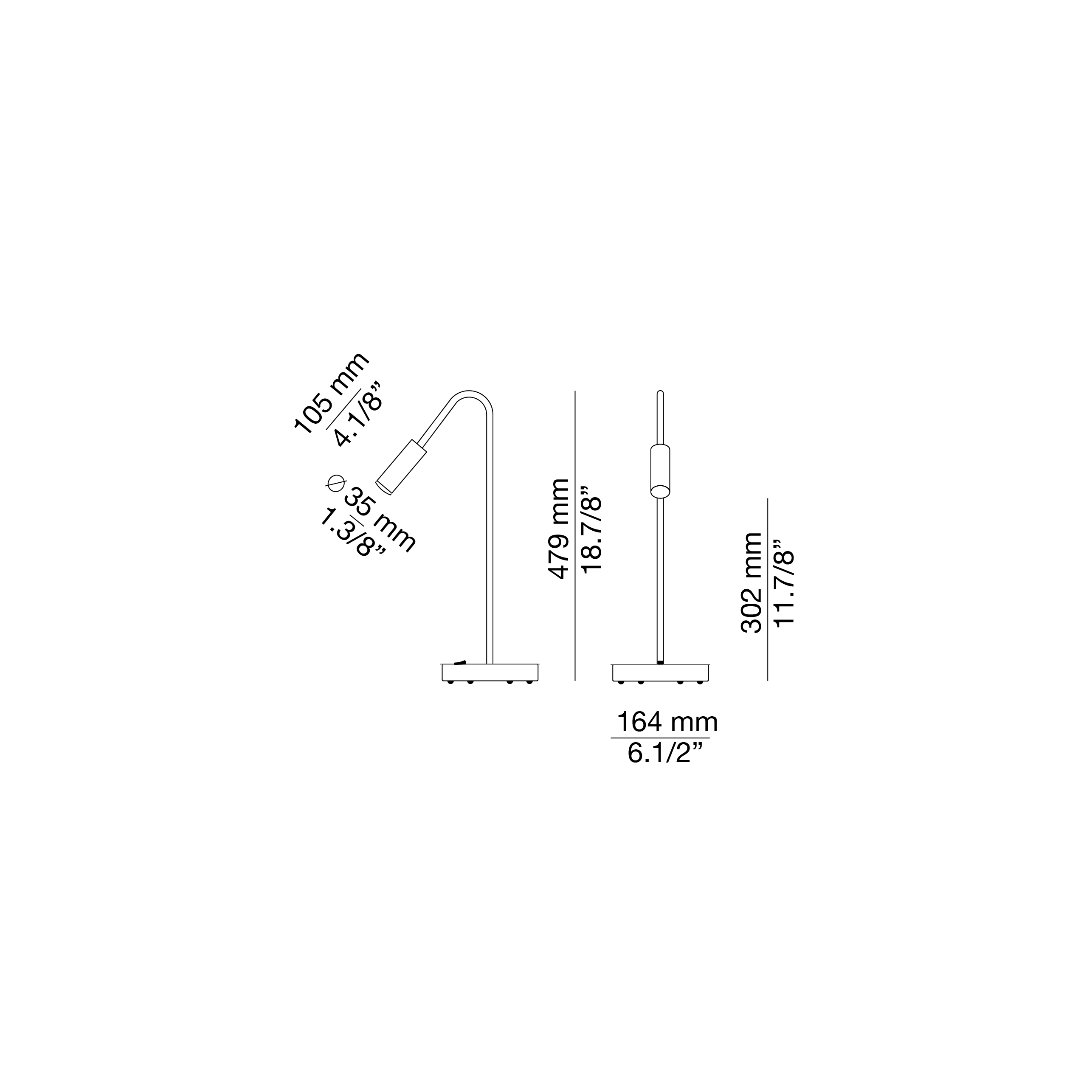 Table lamp with a cylindrical aluminium head, acrylic (PMMA) lens diffuser and integrated LED. On/off switch.