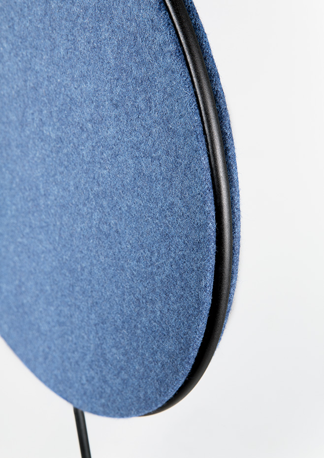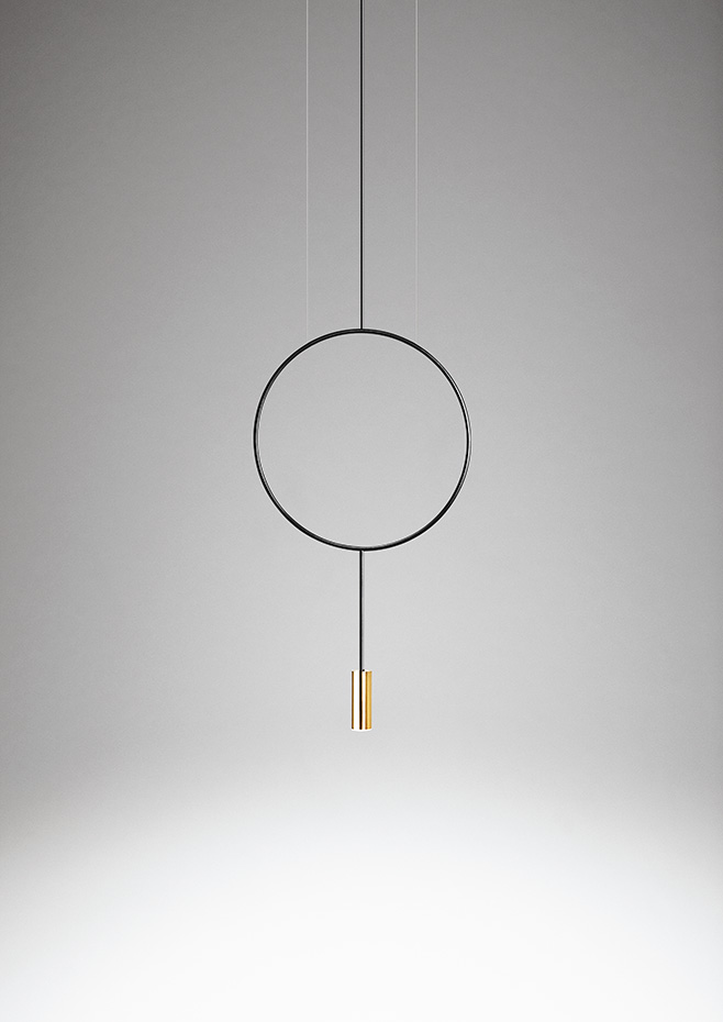 Cylindrical aluminium heads and acrylic (PMMA) lens diffusers. Adjustable height. Optional decorative sound absorbing panel.