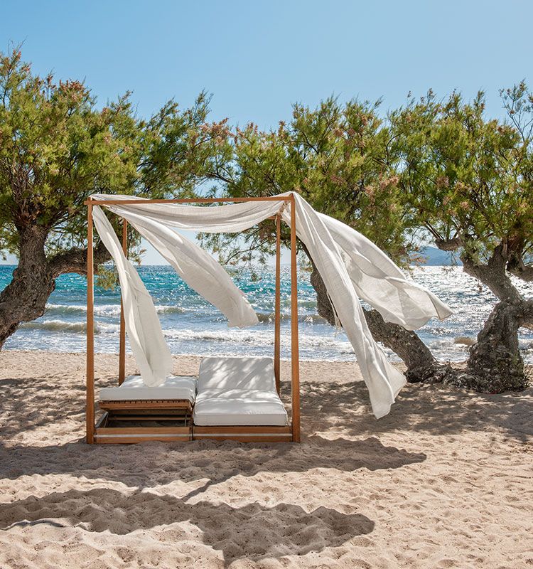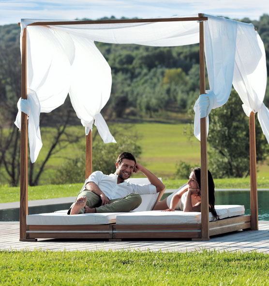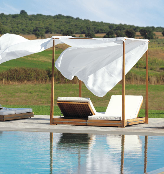 A natural harmony of lines and volumes characterises the Essenza collection, a wide–ranging and versatile solution for furnishing, relaxing and living in the open air. The inserting of brushed steel details in the teak frame creates a distinctive fusion of technology and nature.