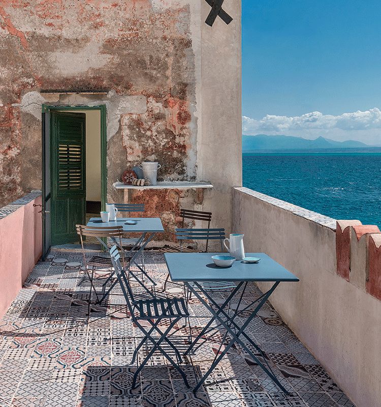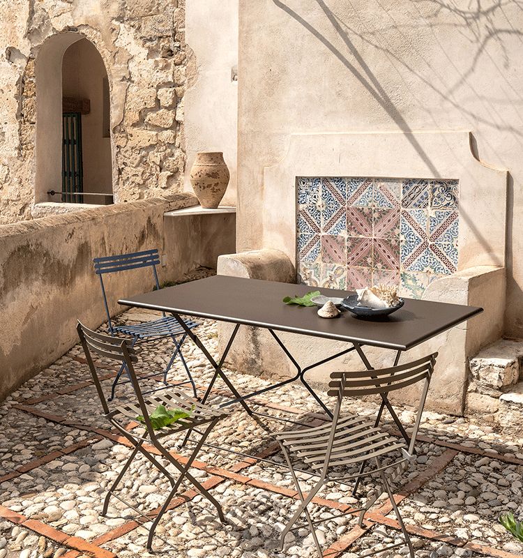 The Flower collection is a line of tables and chairs in which colored metal runs through the bright colors of nature.