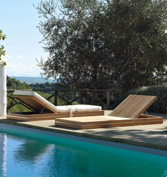 A natural harmony of lines and volumes characterises the Essenza collection, a wide–ranging and versatile solution for furnishing, relaxing and living in the open air. The inserting of brushed steel details in the teak frame creates a distinctive fusion of technology and nature.