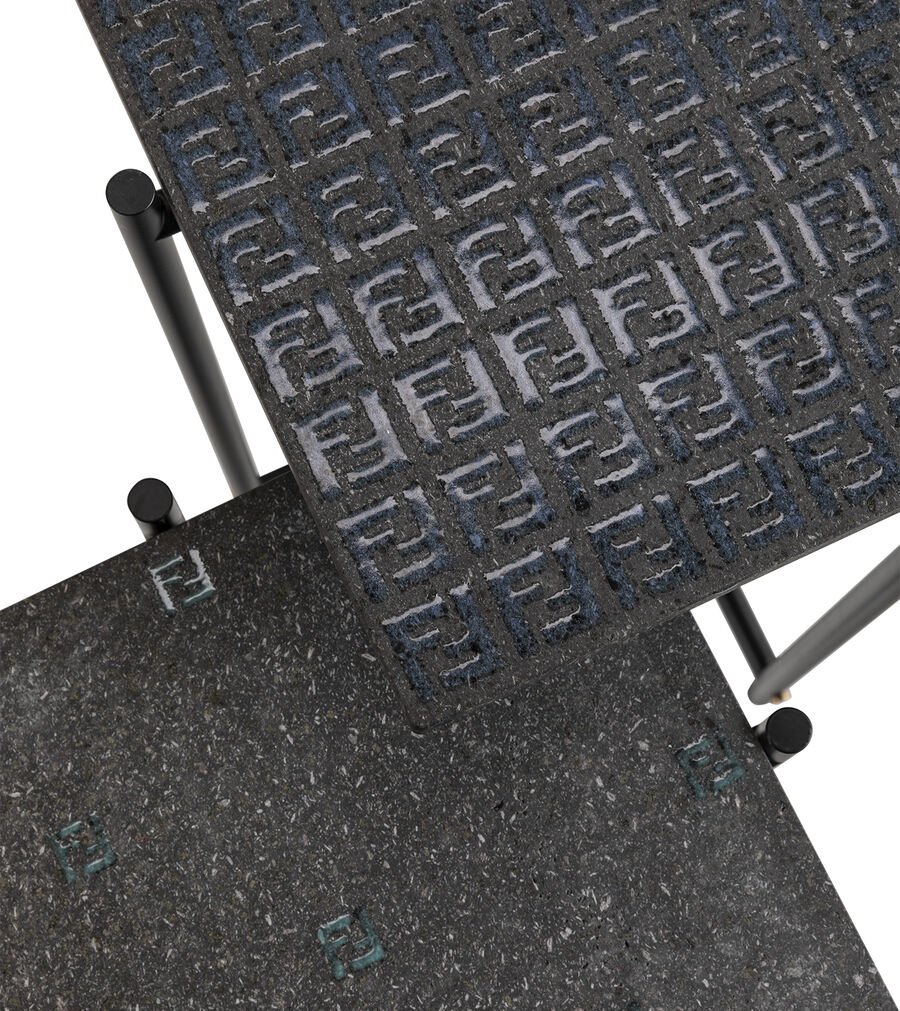 Vulcano is a series of outdoor tables combining steel and lava stone – a homage to the breathtaking beauty of the islands off Italy’s Mediterranean coast. A fused glass top, inspired by hertiage Fendi motifs and available either in a square or round profile, completes the piece. The pared-back fluidity of its forms ensures the Vulcano table fits perfectly into any context, creating a natural link between indoors and outdoors.