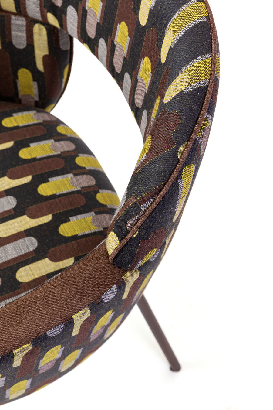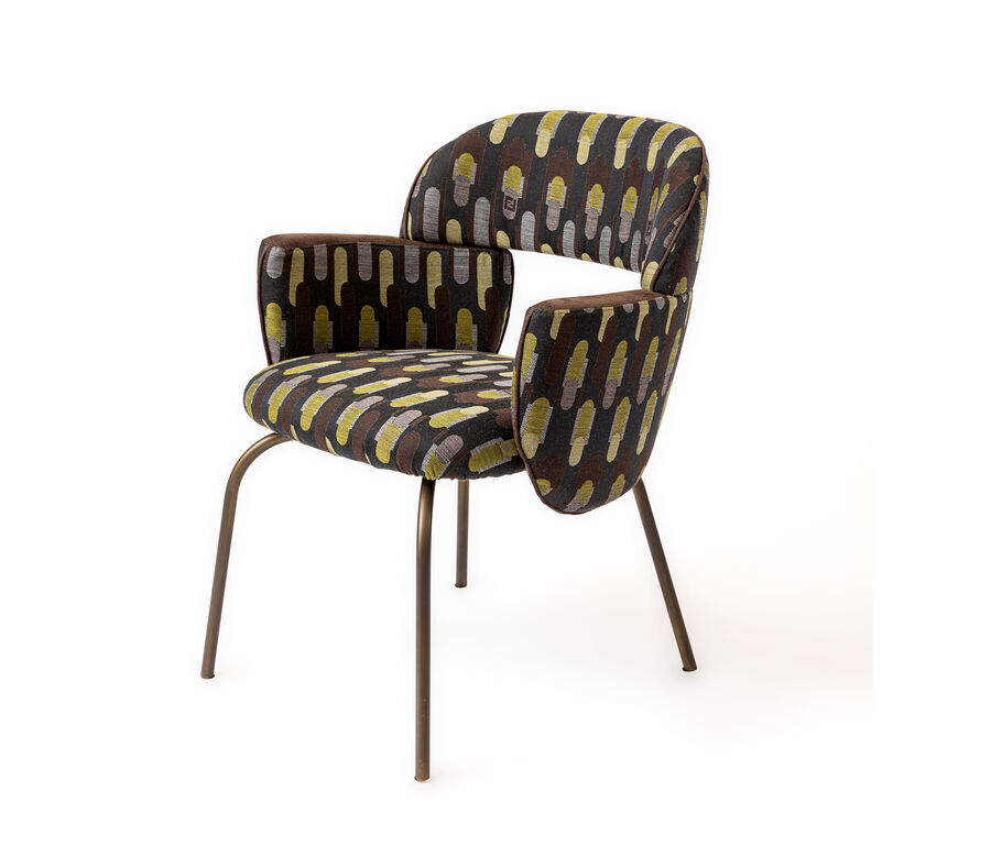 The harmonious form that defines the Pecan chair by Atelier O? is accentuated by the perfectly-pitched combination of materials, with jacquard fabrics and soft leather complementing the almost-severe aspect of the metal base. With its invitingly soft padding, the Pecan chair offers outstanding comfort and contained dimensions, making it ideal for cosy nooks, while able to command attention in larger spaces.
