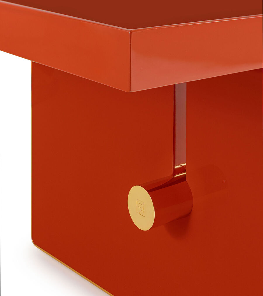 Dimore Studio brings to life the Icaro dining table, a vibrant, Fifties-inspired design in contemporary materials. The stunning 3-metre piece is emphasised by glints of gold from the metal-trimmed edges and tubular metal detail joining the legs, engraved with the FF logo on the circular section.