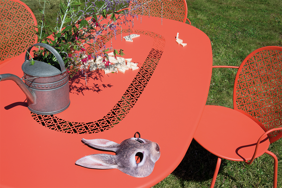 Fermob a transformé l’essai : une table ovale ! Pour cette première, la marque a concrétisé l’inspiration du designer, Frédéric Sofia, avec une forme ovo?de, généreuse et conviviale. Idéale pour les espaces étroits : 6 convives qui peuvent se voir, parler, se régaler autour d'un repas festif à l’extérieur. Si son originalité tient dans sa forme, la table de jardin ovale Lorette se distingue aussi par son plateau métal ajouré. Les perforations, qui caractérisent cette collection, apportent un chic incroyable : Le motif reste apparent même quand le couvert est mis.