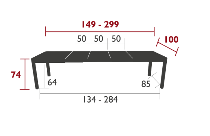 Ribambelle XL, c'est la table en métal la plus modulable du marché ! élégante à 6, 8, 10, 12 ... et jusqu'à14 personnes, elle ne peut mieux porter son nom. Et si elle peut passer de 149 cm à 299 cm de long, c'est qu'elle est munie de 3 allonges de 50 cm de large qui sont très simples d'utilisation.