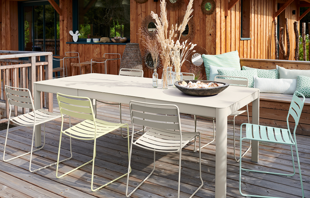 Une structure filaire associée à des lattes fines offrent à cette chaise un dessin très précis, simple et élégant. Cette chaise métal joue la convivialité et le confort avec un encombrement minimum.